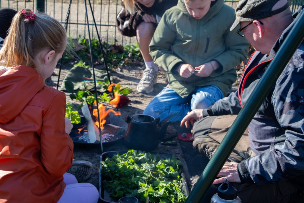 Tijdens de dag was er veel aandacht voor actief en ervaringsgericht leren. Kinderen liepen bijvoorbeeld samen een blotevoetenpad en hielpen mee met het aanplanten van nieuw groen. Ook was er ruimte voor verwondering en gezelligheid, zoals het maken van brandnetelthee op een echt vuurtje op de Campherbeek.